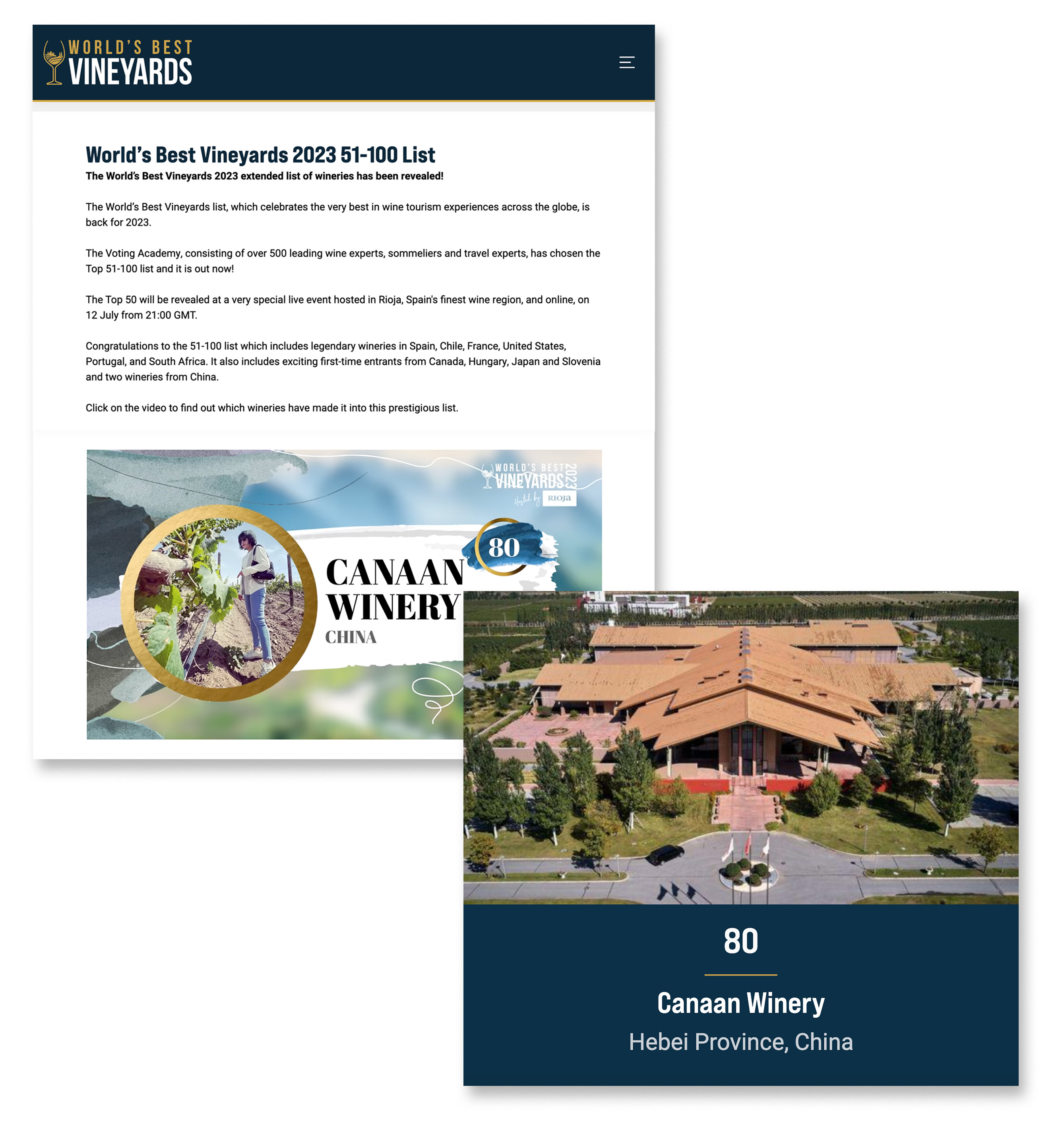 In July 2023, the annual list of the 2023 World's Best Vineyards was officially released. This year marks the first time in the five-year history of the competition that Chinese wineries have made it onto the top 100 list. Among the only two Chinese wineries that made the list, Canaan Winery stands out as one of them and is also the highest-ranked Chinese winery, highlighting the potential of premium Chinese wineries.