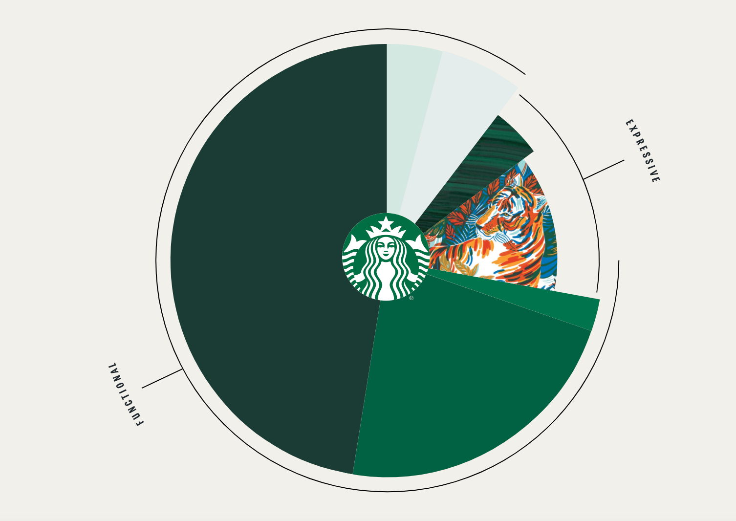 星巴克将「功能性/Functional」与「感染力/Expressive」作为视觉识别的区分纬度,梳理、定义每一次的视觉应用。